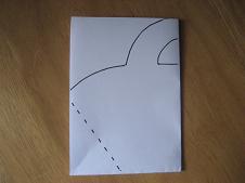 A4サイズの画用紙を4つに折り、直線を切り取ります。