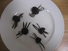 プルーンにつまようじで穴を開け、昆布を1本ずつ刺します。