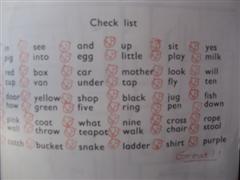 (読めた単語に赤いスタンプを押しました)
