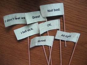 英文の質問を書いたシールを